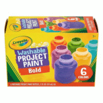 • CRAYOLA WASHABLE PROJECT PAINT: Washable paint in 6 bold colors including Yellow, Green, Yellow Orange, Red Orange, Fuchsia, Teal, and Blue Violet.